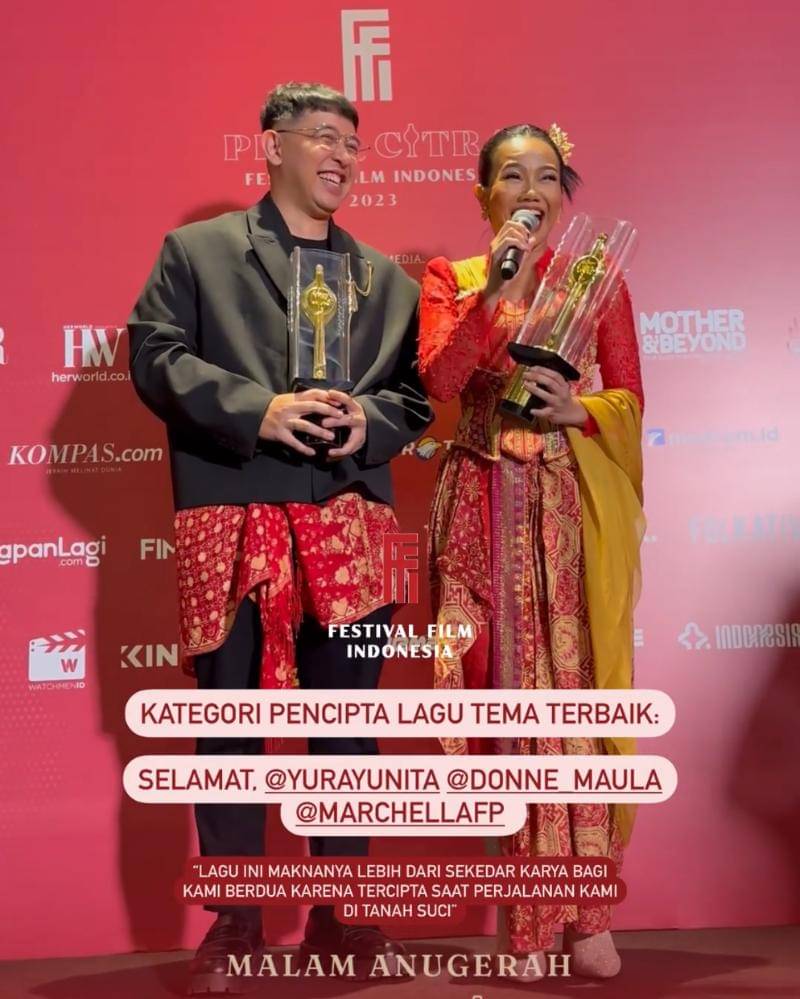 7. Yura Yunita, Donne Maulana dan Marchella FP, pencipta lagu tema terbaik