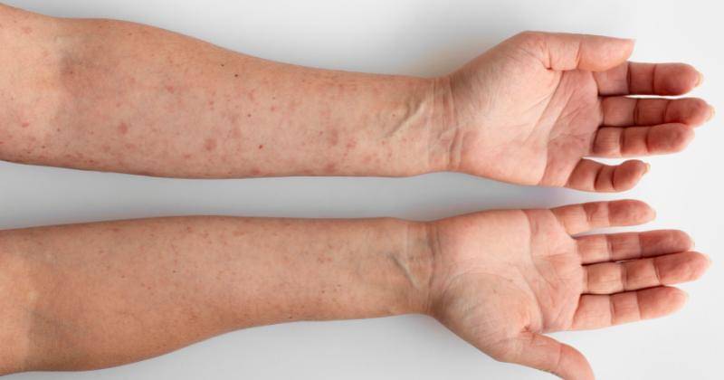 - Munculnya ruam: Setelah 3–5 hari, ruam kemerahan mulai muncul, biasanya dari wajah, lalu menyebar ke seluruh tubuh. Ruam ini disertai dengan rasa gatal atau perih di kulit.