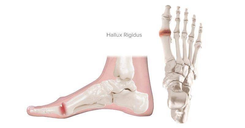 Hallux rigidus biasanya terjadi karena arthritis atau cedera berulang. Pengobatan mencakup penggunaan sepatu khusus, terapi fisik, atau tindakan medis seperti operasi.