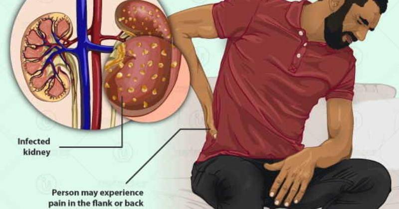 Infeksi ginjal, yang disebabkan oleh bakteri dalam sistem saluran kencing, dapat menyebabkan nyeri di punggung bawah, samping, dan pangkal paha. Ketidaknyamanan ini juga dapat meluas ke perut bagian bawah.