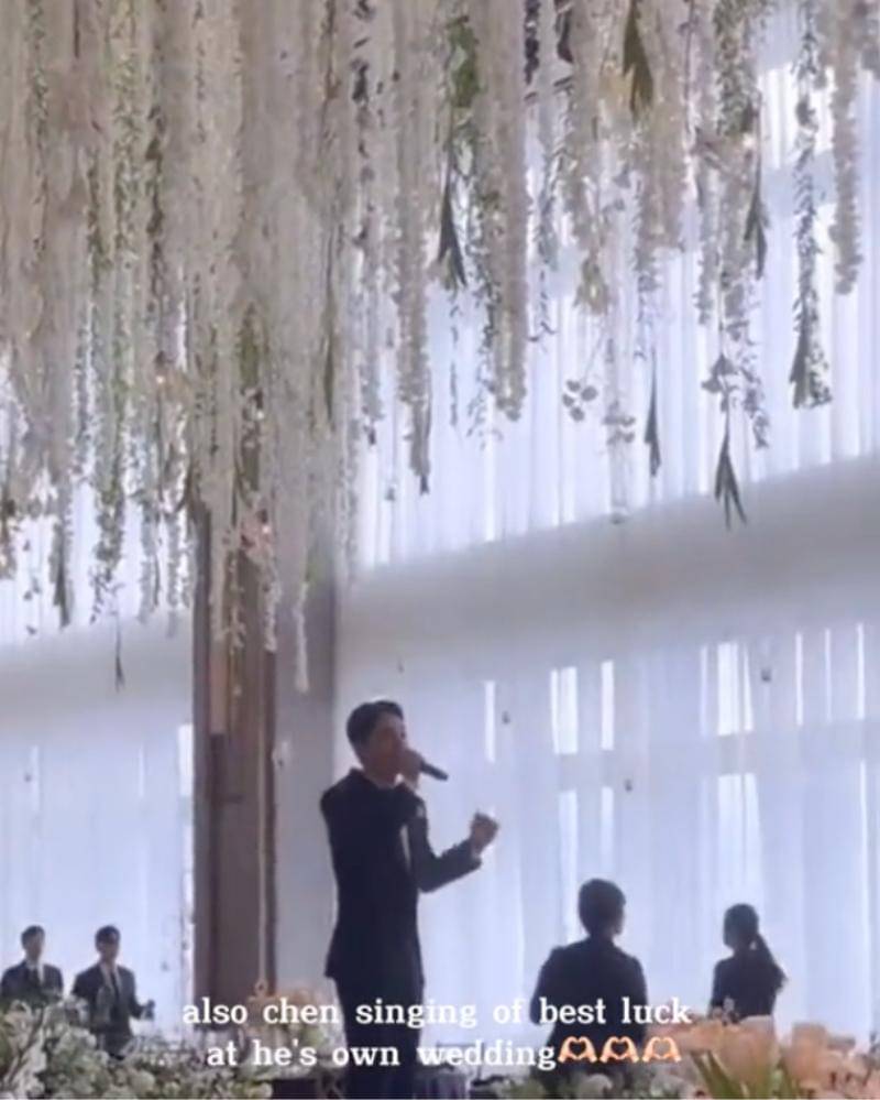 Sebuah pernikahan tidak lengkap tanpa penampilan musiknya. Pada upacara pernikahannya Chen diketahui mempersembahkan lagu berjudul "Best Luck". Sebagai lead vocalist di EXO, suaranya tidak perlu diragukan lagi.