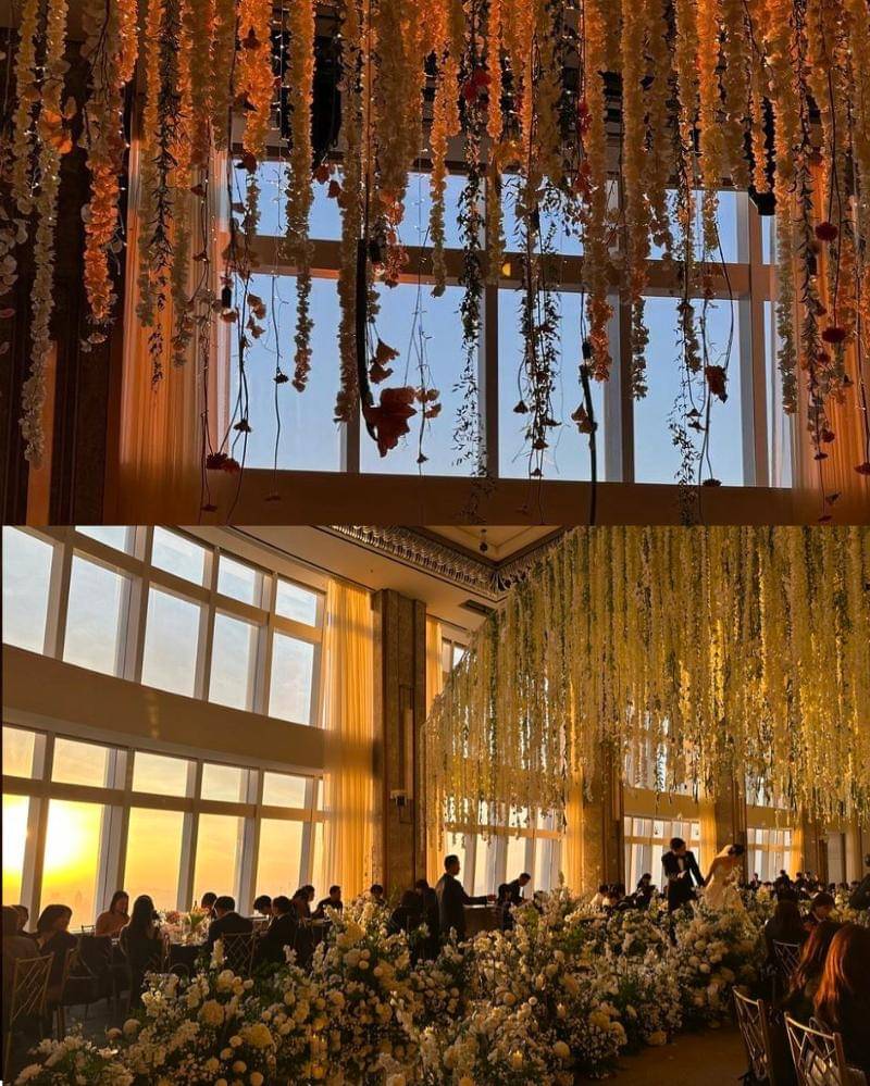 Tidak diragukan lagi, dekorasi tempat adalah salah satu bagian terpenting dalam menentukan suasana upacara. Upacara pernikahan Chen diadakan di tempat yang indah, dihiasi penuh dengan rangkaian bunga putih.