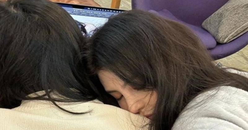 Seperti kali ini, ia terlihat memposting foto kala ia bersandar di bahu salah satu temanya yang sedang membuka laptop. Bisa jadi, itu adalah teman baiknya, ya, Ma.