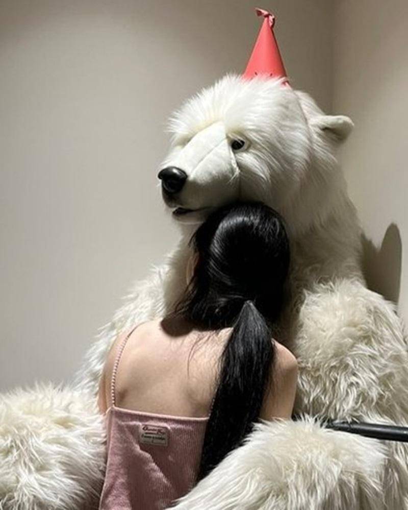 Masih dalam postingan ultahnya, terlihat So Hee sedang memeluk boneka beruang berwarna putih yang mengenakan topi ulang tahun berwarna merah.