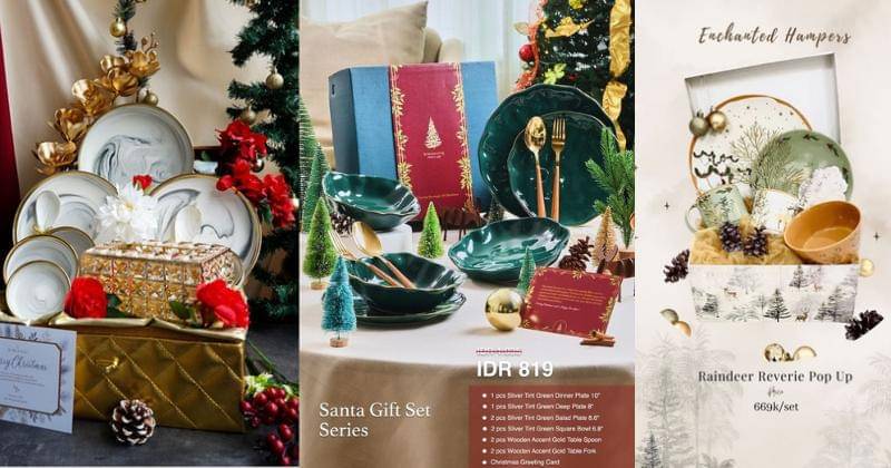 Kemudian ada juga Santa Gift Series dari @brewsuniq yang menyediakan 10 pcs macam piring porcelain dengan ukuran yang berbeda, dibanderol mulai Rp819 ribuan. Serta Christmas Porcelain Gift dari @godelivagift, yang dibanderol dengan harga Rp1,3 juta.