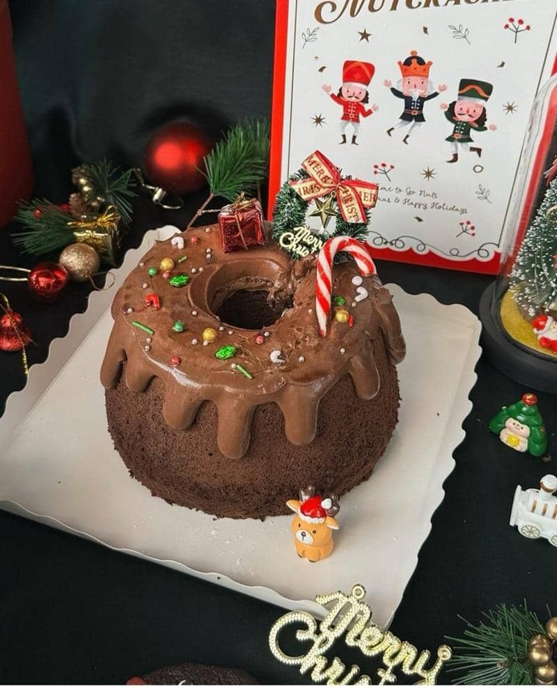 Di nuansa Natal, mereka mengeluarkan cake dengan siraman cokelat lezat di bagian luarnya. Wah, tempting!