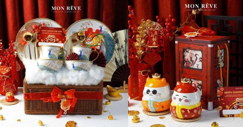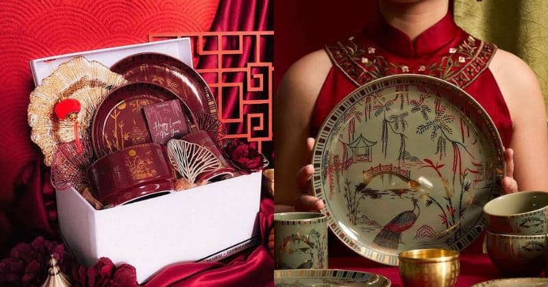 1. Pop up hampers tableware porselen mewah bertema CNY dari Carramica