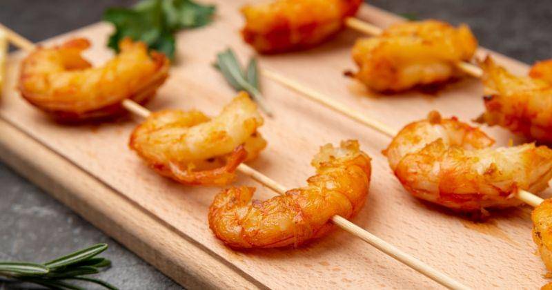 - Tusuk udang pada tusukan sate, lalu bakar di atas bara api.