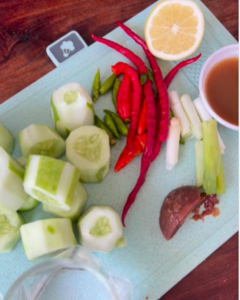 - Cuci semua bahan sampai bersih dan tiriskan.