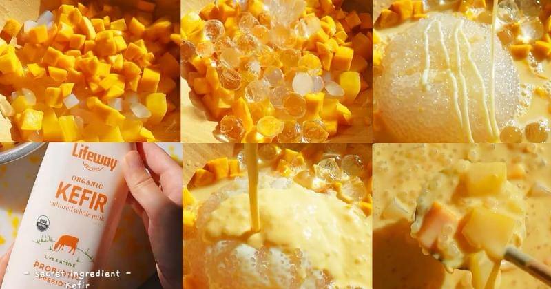 - 3 cangkir Kefir rasa mangga (Kefir tawar atau Yakult juga bisa, sesuaikan tingkat kemanisan dengan preferensi)