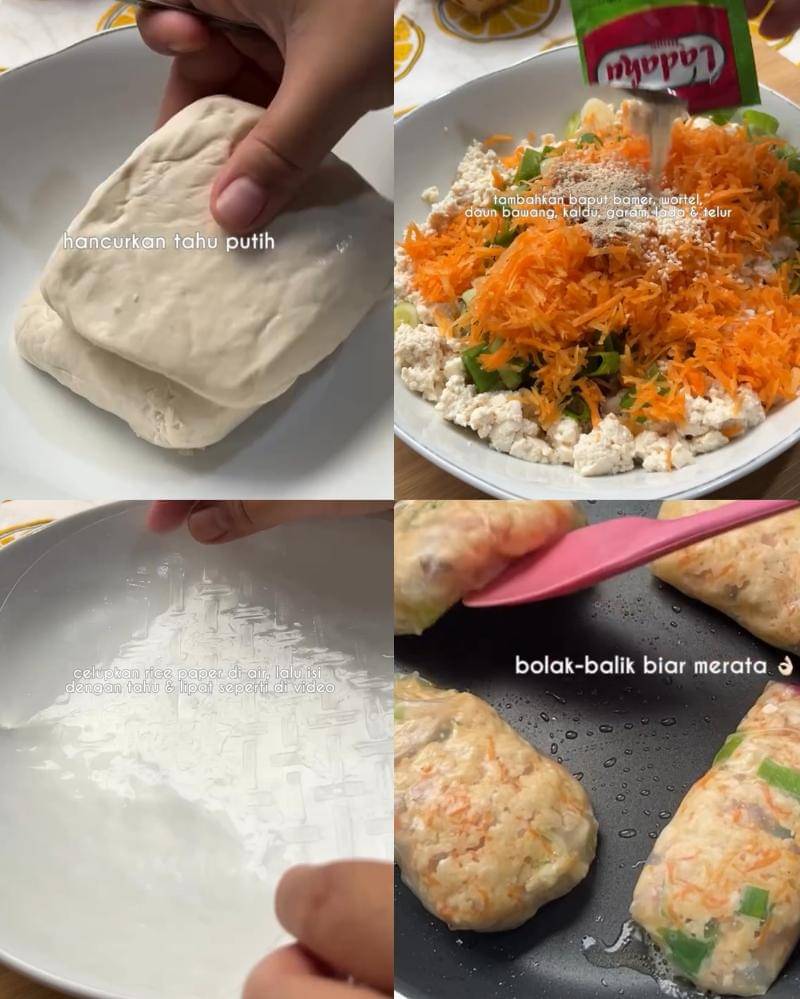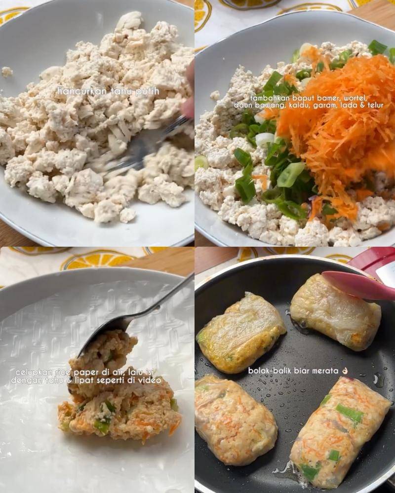 - Lipat rice paper dengan rapi, supaya tidak ada cela yang dapat merusak martabak tahu nantinya.