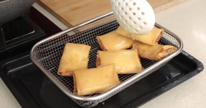 - Panaskan minyak, goreng hingga kecokelatan di api sedang, tiriskan.