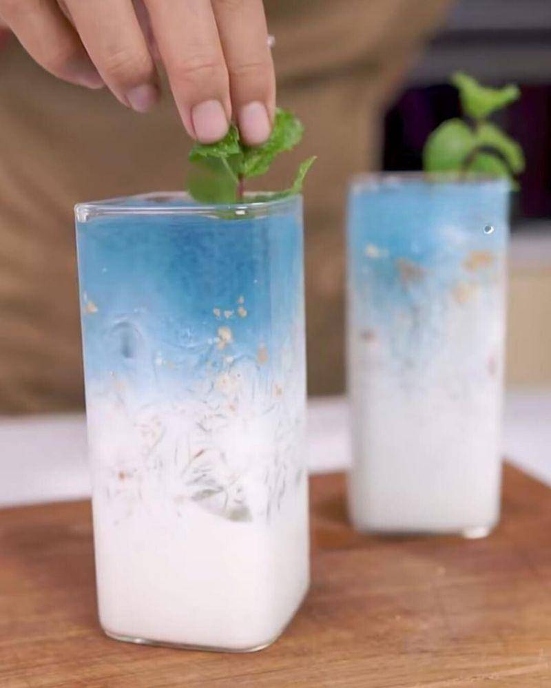 - Aduk kedua bahan tersebut agar warnanya biru, sekaligus aroma mint keluar.