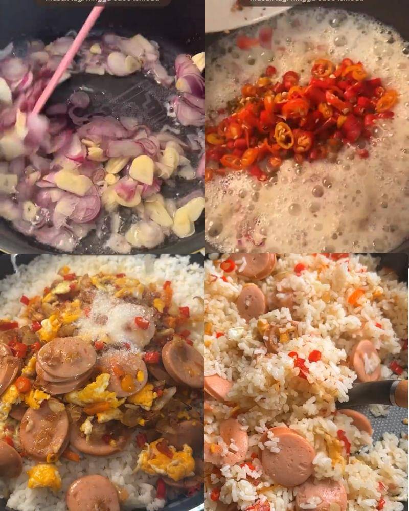 - Tuang sosis dan oseng lagi, hingga hangat.