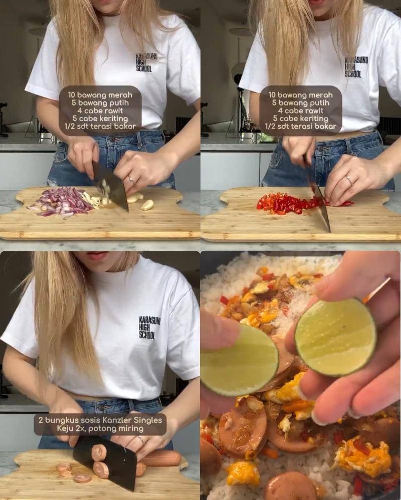 - Atur api menjadi sedang-besar, tuang nasi putih, semua bumbu dan peraskan jeruk nipis.