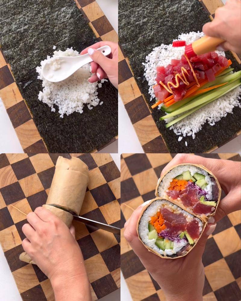 - Iris bagian tengah dan nikmati tuna sushi burrito!
