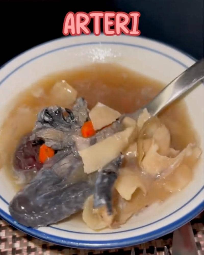 Makanan yang satu ini merupakan menu confinement. Menu yang dibuat khusus berupa ayam black famgas. Makanan yang disantap Sisca ini memiliki manfaat untuk membersihkan arteri dan pembuluh darah yang tersumbat.