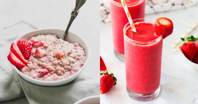 Kamu bisa menikmati stroberi saat sarapan, dengan menambahkannya pada oatmeal. Jika tidak, cobalah membuat smoothie dengan memadukan bahan-bahan berikut: