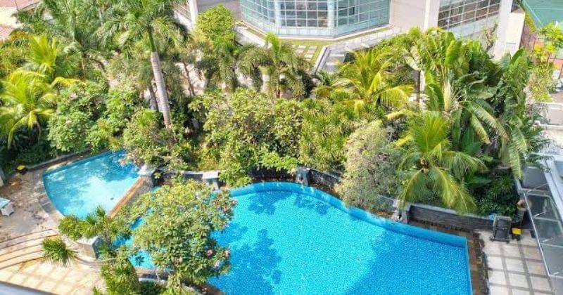 Hotel ini menawarkan pengalaman staycation dengan city view yang romantis. Dua kolam renang untuk dewasa dan anak-anak menjadi daya tarik utama bagi keluarga.