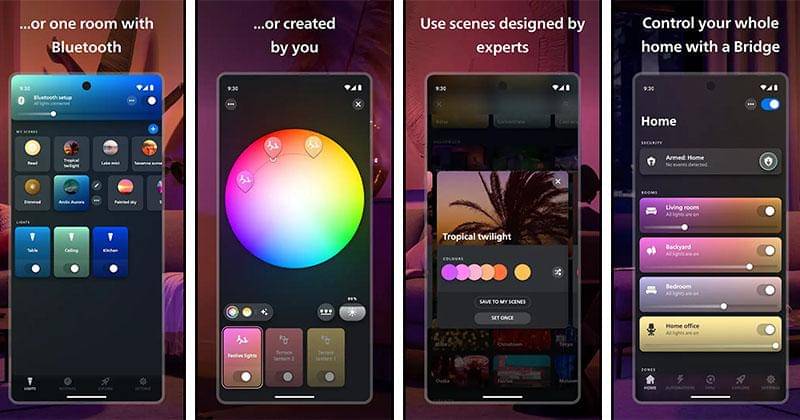 Kecanggihan Philips Hue juga tak perlu diragukan lagi. Aplikasi ini secara otomatis dapat menghidupkan lampu saat pemilik rumah pulang, begitu pula sebaliknya.