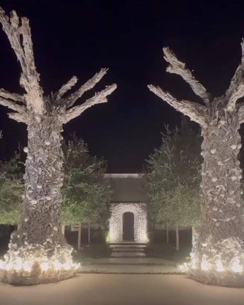 Bagian paling menonjol, yakni dua pohon besar yang lapisi tengkorak dan tulang. Inspirasi ini sebenarnya sudah dilakukan Kim tahun 2022 lalu. Hanya saja di tahun ini lebih mendetail.