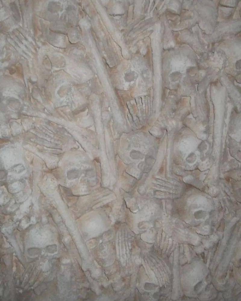 Dilihat dari dekat pohon besar ini terbuat dari imitasi tulang dan tengkorak bak menara. Dari bawah terlihat tubuh manusia yang berbentuk tulang ditumpuk terus-menerus hingga membentuk sebuah pohon.
