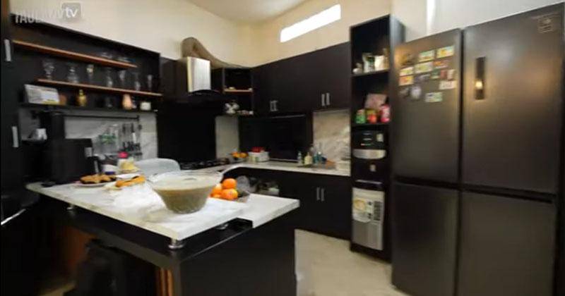 Masuk ke dalam, akan langsung terlihat suasana dapur yang didominasi warna hitam pada perabotannya.