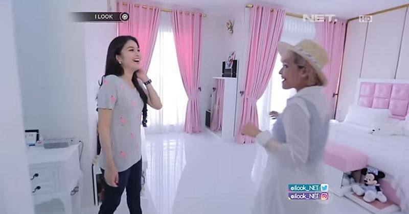 Masuk ke dalam, terlihat suasana kamar milik sang aktris yang serba putih berpadu dengan pink. Penampilan kamarnya sangat feminin dan cerah dengan dominasi putih.