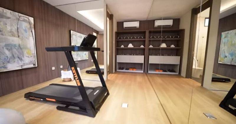 Kendati huniannya tak terlalu besar, rumah tersebut masih menyediakan fasilitaas gym yang simpel namun tetap menarik. Fasilitas itu menyediakan treadmill serta beberapa dumbbell.