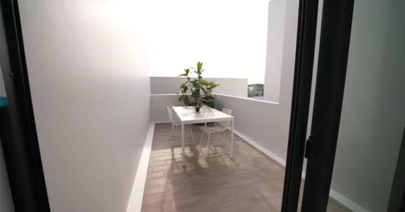 Calon rumah Thariq dan Aaliyah memiliki area outdoor yang terletak di sisi kamar tidur. Area tersebut memiliki meja kecil yang bisa dimanfaatkan untuk bersantai sambil menghirup udara segar.