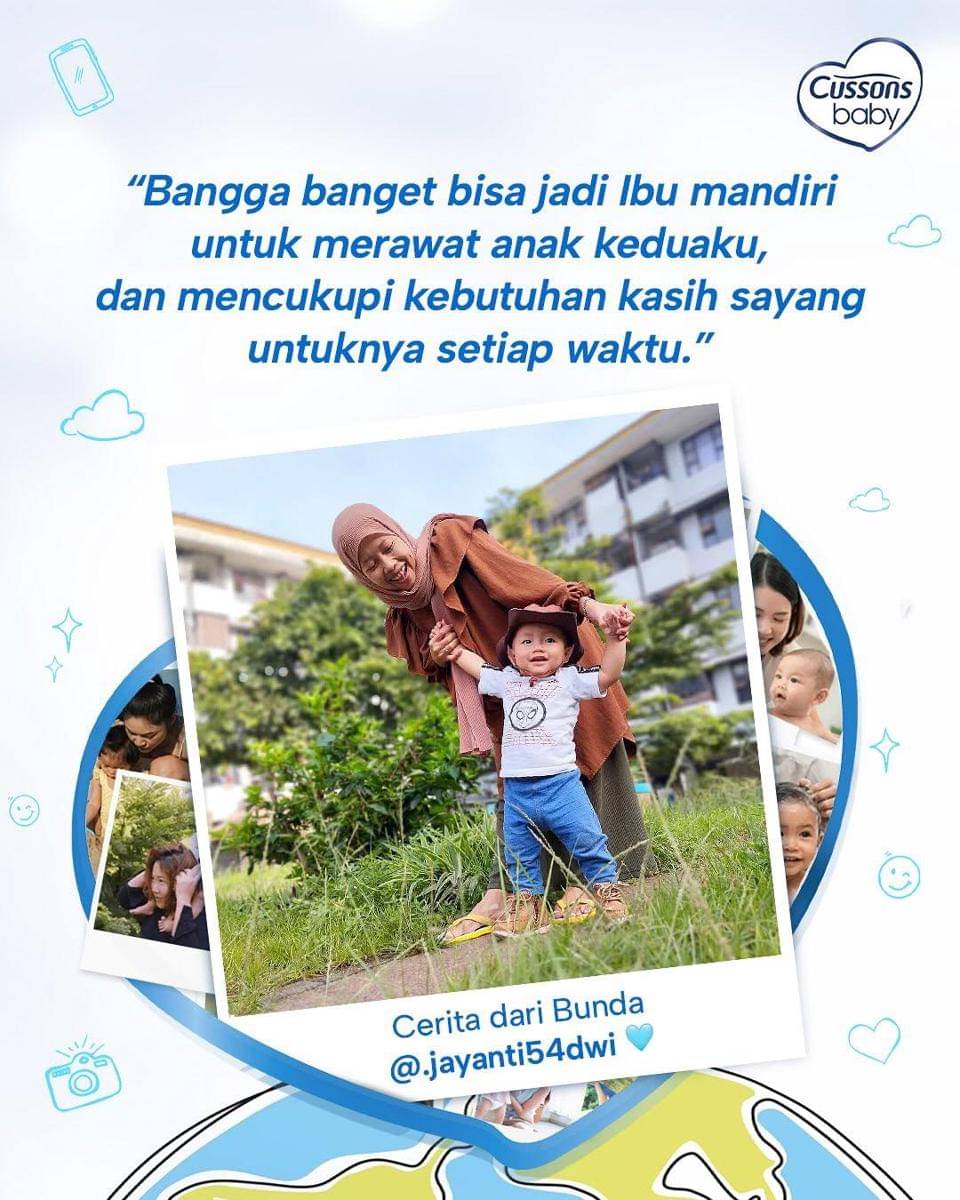 "Bangga banget bisa jadi ibu mandiri untuk merawat anak keduaku, dan mencukupi kebutuhan kasih sayang untuknya setiap waktu," tulis Jayanti Dwi, salah satu ibu yang berpartisipasi dalam kampanye Cussons #BanggaJadiBunda.