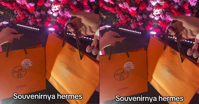 Seakan ingin memanjakan para tamunya, Ryan memberikan suvenir berupa produk Hermes. Produk mewah tersebut dibagikan dengan menggunakan totebag kuning dengan ikon H.