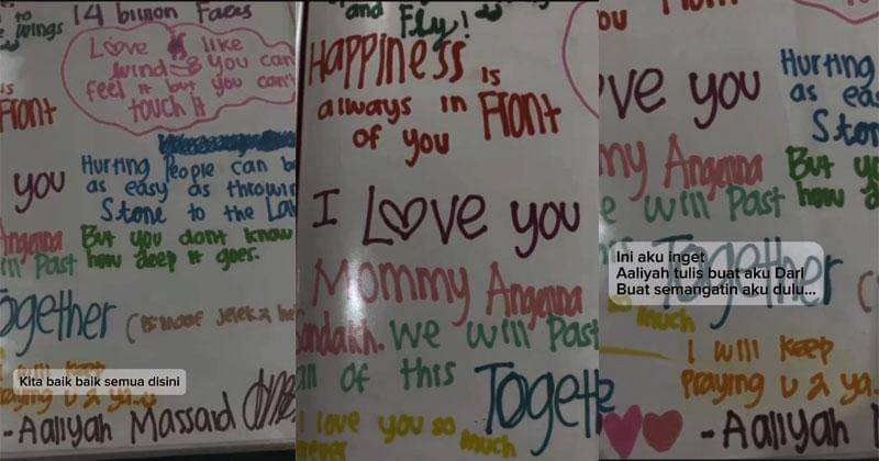 "Darl, hari ini tadi, Aaliyah tunangan Darl. Ini aku ingat Aaliyah tulis buat aku Darl, buat semangatin aku dulu," tuturnya sambil membagikan kenangan ucapan semangat dari Aaliyah dulu.