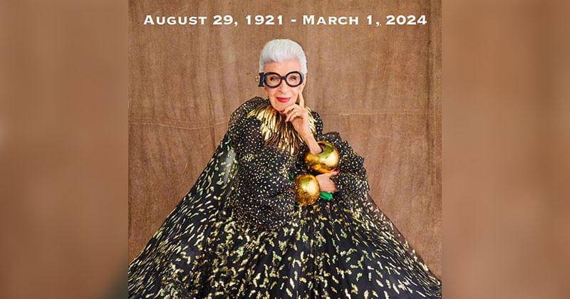 "Iris Barrel Apfel. August 29, 1921 - March 1, 2024," tulisnya dalam unggahan tersebut.