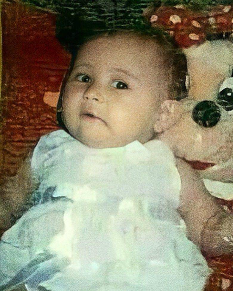 Baik mama maupun papa dari Prilly suka sekali mengabadikan momen yang terjadi pada kedua anak mereka. Kalau ini merupakan foto jadul ketika Prilly merayakan ulang tahunnya yang pertama. Tampak sebuah kue tart cokelat dihiasi lilin angka 1 berada di depan Prilly.