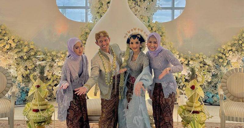 Terlihat kedua pengantin didampingi oleh Nabila Sindi dan Xaviera di pelaminan dan foto bersama dengan kompak.