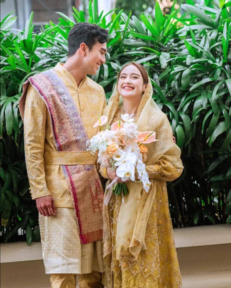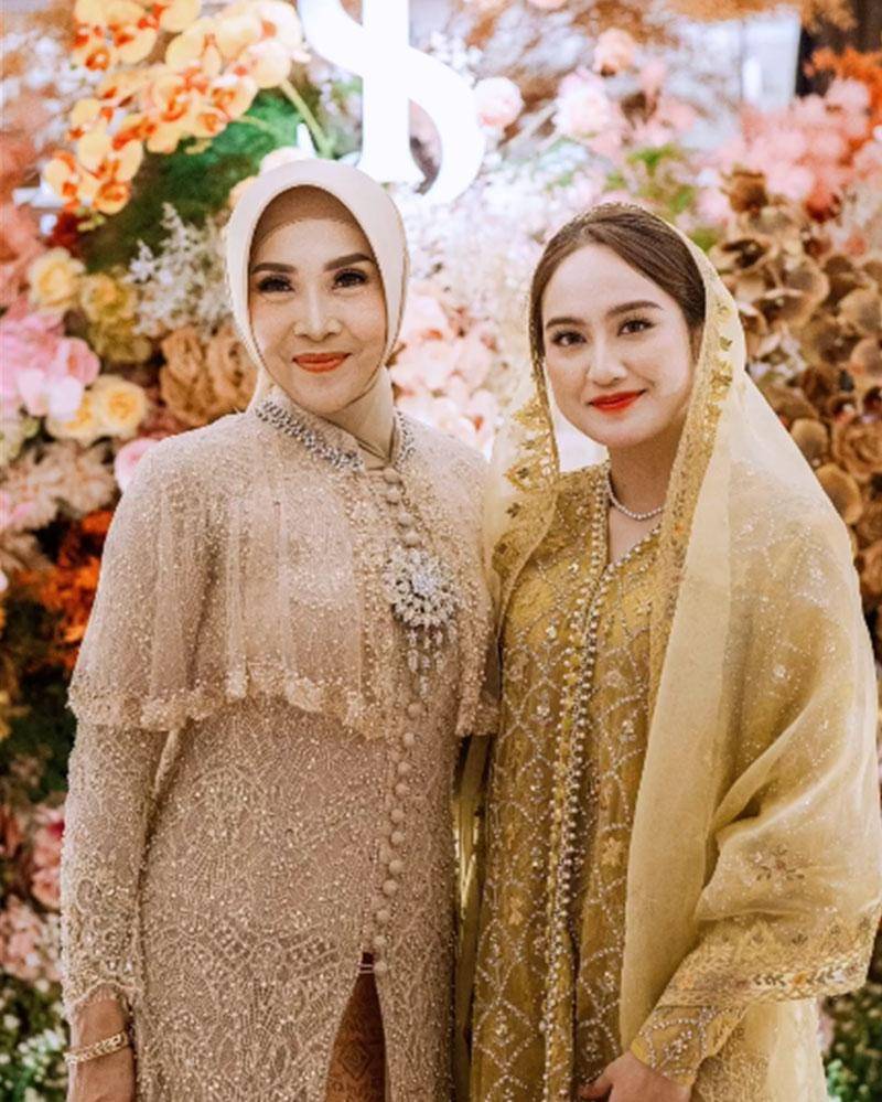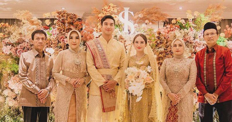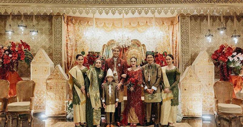 Usai membagikan potret lamaran, mamanya Salshabilla juga turut mengunggah momen resepsi pernikahan yang dibalut dengan adat Minang sesuai keturunan keluarga sang aktris. Mereka mengenakan pakaian adat bernuansa maroon dan emas serta ornamen khas Minang.