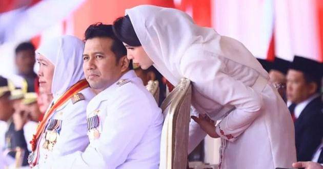 Ini merupakan salah satu potret mesra keduanya yang berhasil diabadikan oleh kamera. Pada perayaan hari jadi Jawa Timur ke-78, Emil terlihat beberapa kali mengelus rambut istrinya yang berada di sampingnya.