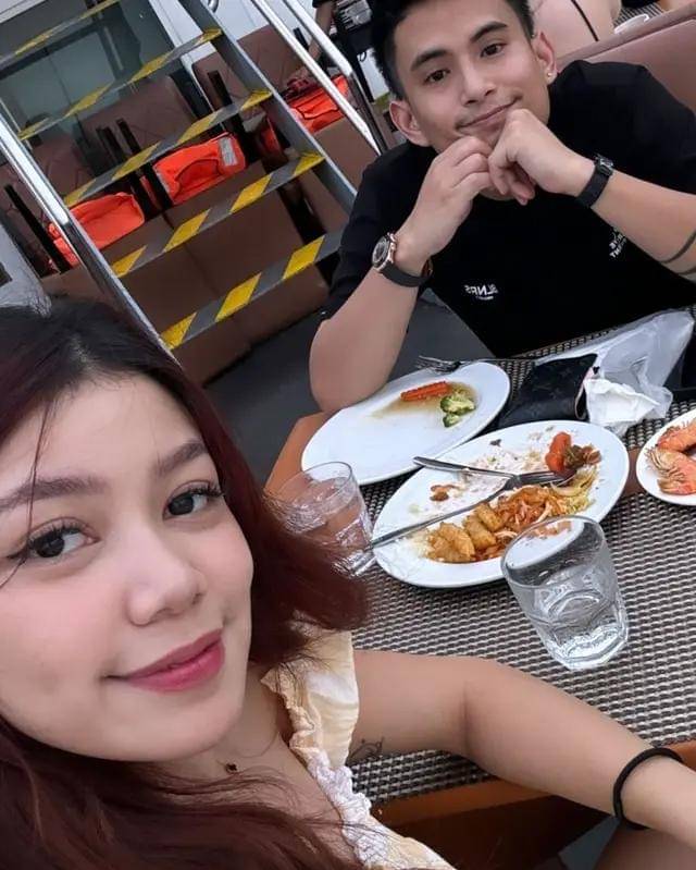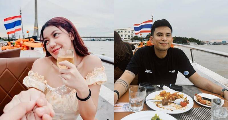 Kalau ini adalah momen saat keduanya melakukan makan siang di atas kapal. Okin dan Regina menikmati santapan mewah sambil disuguhkan pemandangan Chao Phraya River, yang merupakan sungai terpanjang di Thailand.