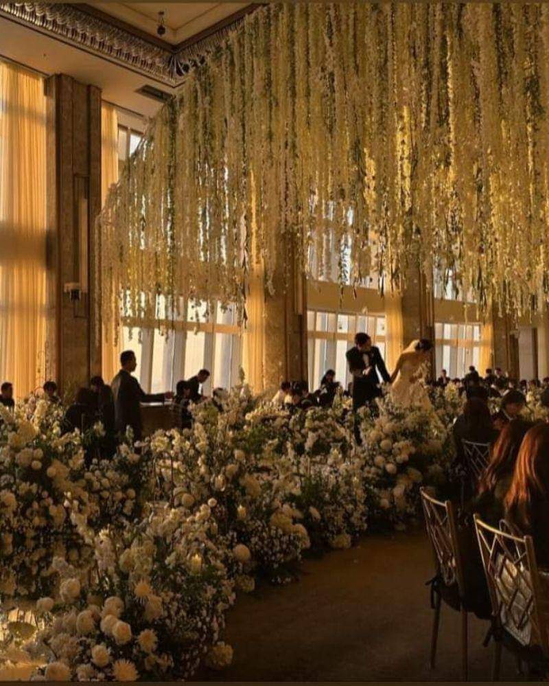 Pernikahan Chen bak di negeri dongeng. Bunga putih panjang menggantung pada bagian altar. Sementara itu, untuk bagian bawahnya dihiasi dengan bunga-bunga beragam warna yang tidak kalah menawan.