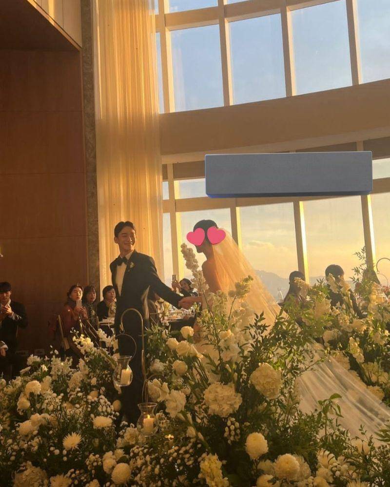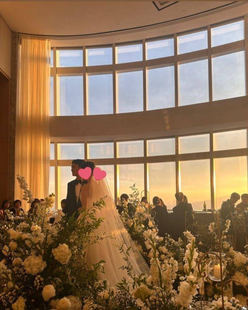 Chen EXO dan istrinya memilih venue dengan pemandangan cantik berjendela besar. Hiasan bunga hidup menjadi dekorasi utama pernikahan mereka yang menciptakan rasa elegan dan mewah sekaligus.