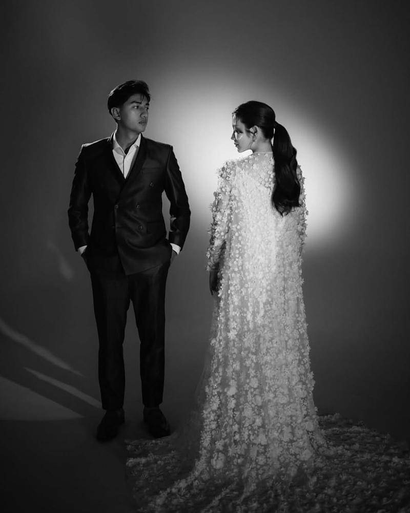 Mereka tampil begitu serasi dengan konsep monokrom yang memberikan kesan elegan dan klasik. Monokrom sendiri kerap menjadi salah satu pilihan timeless untuk mengabadikan momen spesial setiap pasangan.