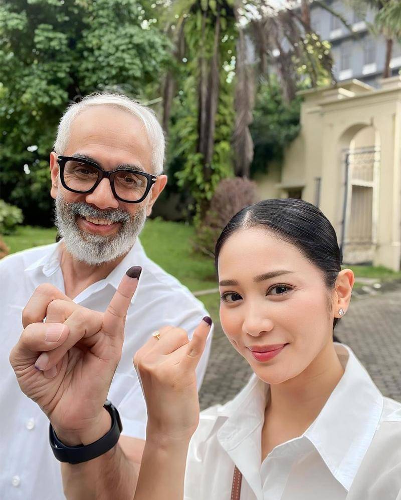 Pasangan artis yang jarang diterpa isu miring ini terlihat serasi saat melakukan pencoblosan yang berlangsung pada 14 Februari 2024. Keduanya berpose saling menatap dan memamerkan kelingking yang telah berwarna ungu.