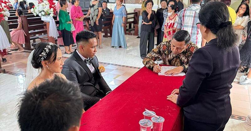Kabar ini terungkap dalam sebuah unggahan Instagram @abouthetic yang membagikan video pernikahan Bharada E dengan Ling Ling. Keduanya nampak tersenyum bahagia dengan balutan jas serta gaun pengantin yang menawan.