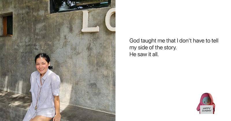 "Tuhan mengajarkanku bahwa aku tidak perlu menceritakan kisahku. Dia melihat semuanya," tulisnya pada Minggu (5/11/2023).