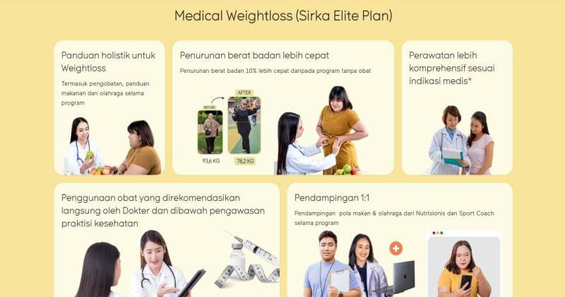 Klinik Sirka yang ada di BSD, Tangerang ini juga memiliki program Medical Weight Loss yang menggunakan panduan holistik untuk menurunkan berat badan. Bersama coach pribadi, kamu akan dipandu untuk menemukan pengobatan, panduan makanan, dan olahraga yang sesuai dengan kebutuhan selama program.