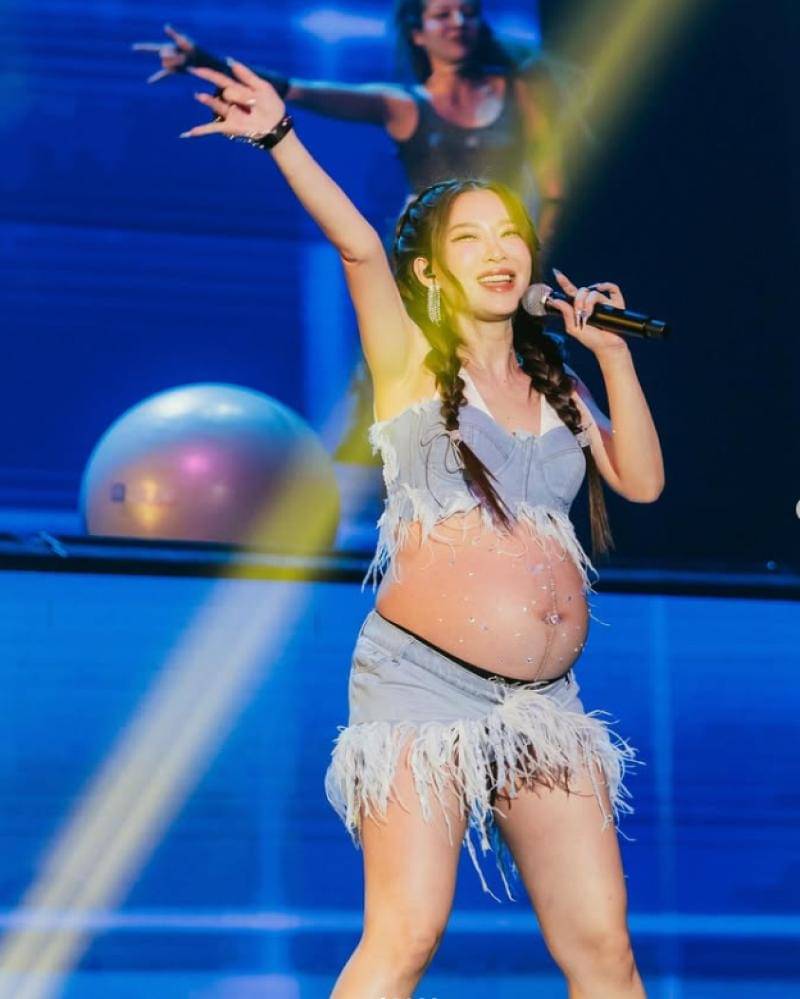 Bahkan, perut hamilnya diberikan hiasan permata dan otomatis menjadi show stealer di panggung Girly Berry. Ia pun mengetahui kapasitasnya. Sebagai ibu yang sedang hamil, ia tidak sepanjang waktu berdiri dan bergerak di atas panggung.