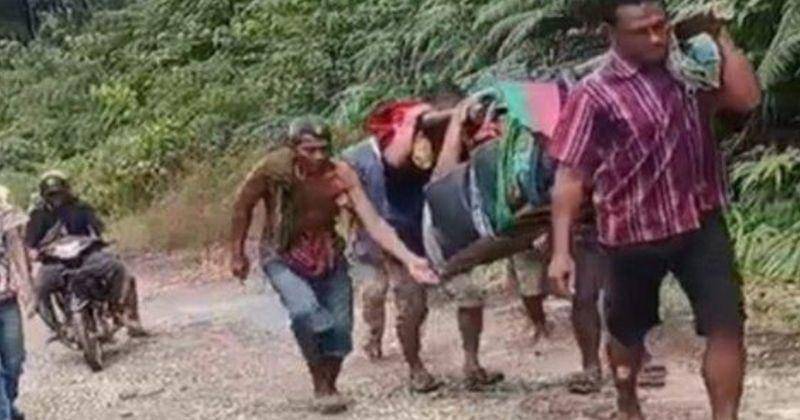 Reni terpaksa dibawa menggunakan tandu darurat yang terbuat dari kayu, tikar, dan sarung. Hal ini lantaran, daerah tempat tinggalnya memiliki akses jalan yang buruk dan minim sarana transportasi.