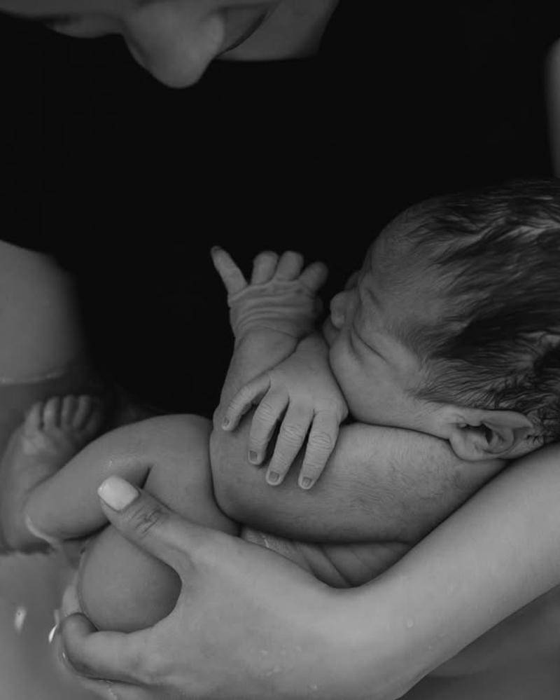 Tidak ada induksi, infus, dan ruang operasi. Persalinannya kali ini dipenuhi dengan kehangatan. Ditemani oleh doula, ia melahirkan dengan dukungan dari keluarga intinya.