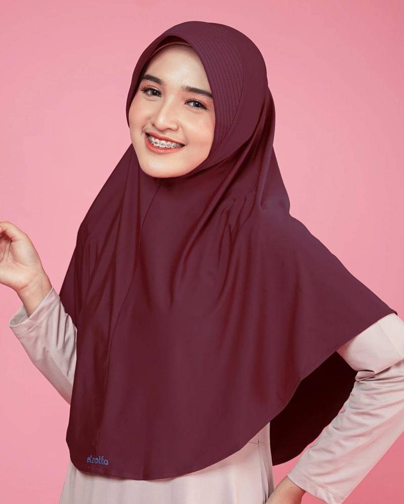 Selanjutnya ada khimar dari Si.Se.Sa. Brand ini memang memiliki banyak produk bergo. Mulai dari bergo harian hingga bergo khimar.